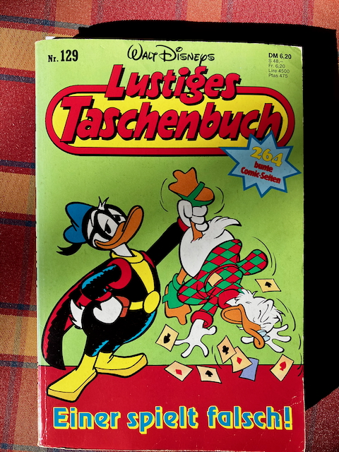 Bei einer Bücherregal-Bereinigungsaktion bin ich auf das Lustige Taschenbuch Nummer 129 von 1988 „Einer spielt falsch“ gestoßen. Der Versuchung, mal wieder einen Disney-Comic zu lesen, konnte ich nicht widerstehen. Die erste Geschichte „Der Golfstrom“ handelt von dem US-Septillionär Dagobert Duck, der auf der Suche nach Profitmöglichkeiten den High-Tech-Freak Daniel Düsentrieb trifft.